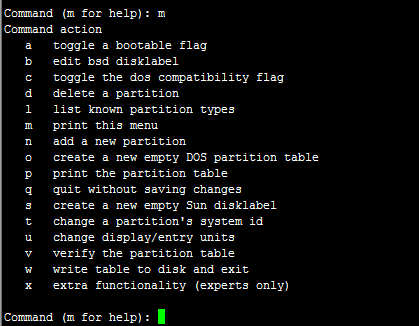 5、默认情况下新建分区的格式为linux,我们使用lvm动态添加磁盘空间,故需要修改 /dev/sdc1 分区格式为lvm,lvm格式id为8e;
