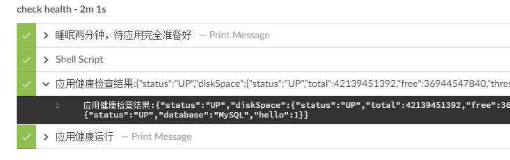 jenkins的构建步骤执行到健康检查时,需要让线程休眠1~2分钟左右,等待应用完全启动。第一次健康检查如果失败了,有可能是应用没有完全启动,在休眠指定时间,如果还是失败了,那么久判定这个应用启动失败,抛出异常,让这次ci结束并标记失败