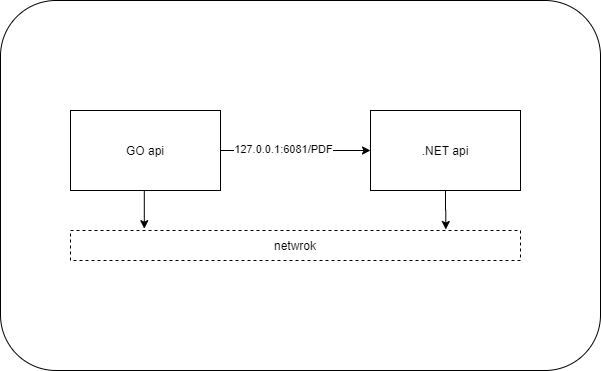 我可以通过docker-compose同时启动go api和.net api,最重要的还是可以让go与.net项目使用同一个network的方式,使go api通过127.0.0.1:port来调用.net api,拓扑如下