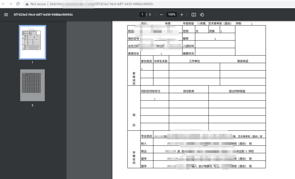 一个用golang开发的某个项目,希望根据学生信息打印学籍,学籍表其中一部分如下