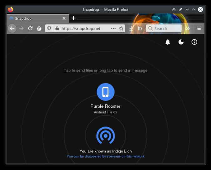 一旦两个或更多的客户端连接了同一个 Snapdrop 服务,用户就可以通过本地网络来回交换文件和聊天信息。传输的速度很快,而且你的数据也保持在本地。