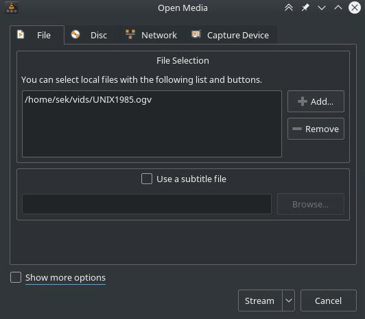 VLC 可以轻松设置流媒体。事实上,它是媒体菜单中的一个选项,或者你可以按下键盘 Ctrl+S。将一个文件或一组文件添加到你的流媒体队列中,然后点击 Stream 按钮。