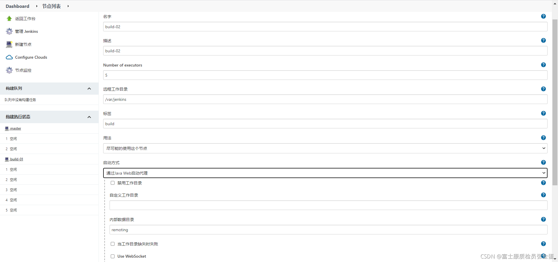 java -jar agent.jar -jnlpUrl http://139.198.166.235:8080/computer/build%2D02/jenkins-agent.jnlp -secret 942d7e769a43f65388751ee954af20e90fa0c5f8bdb19e0584db4cc61adab8ba -workDir "/var/jenkins"