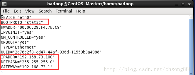 注:修改网络设置必须是root用户或是sudovi/etc/sysconfig/network-scripts/ifcfg-eth0