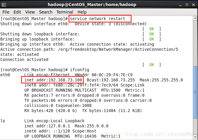 为了使地址生效,需要重新启动网络配置,如下图输入:service network restart