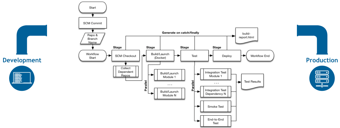 Pipeline提供了一套可扩展的工具,用于通过管道域特定语言(DSL)语法将“简单到复杂”的交付管道使用“代码”建模 。