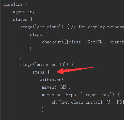 steps是声明式管道特定语法,用于描述要在此中运行的步骤stage。