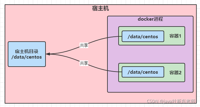 容器数据卷就是目录的挂载,将我们的容器的目录挂载到宿主机上,从而实现打通宿主机和容器之间的文件共享功能;