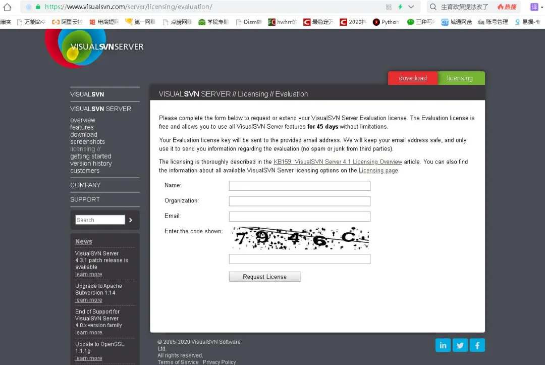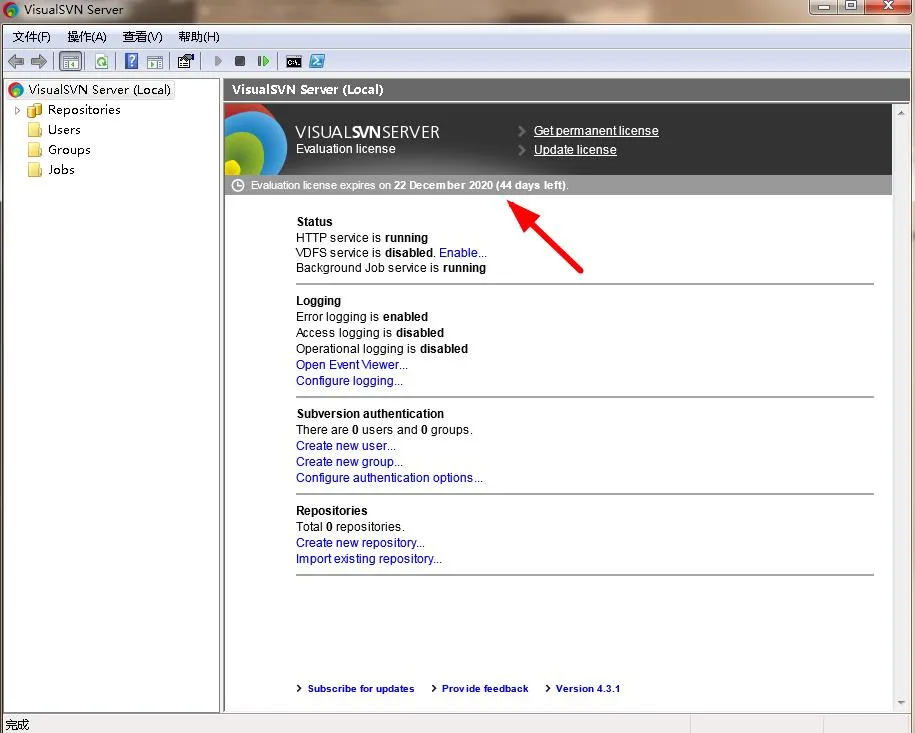 要想在集中式版本控制系统上访问资源,首先得搭建一个svn服务器,这里我们得下载一个可以创建svn服务的软件——VisualSVN server,下载地址: