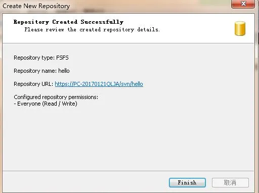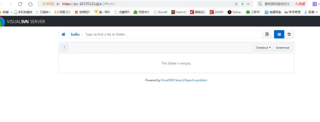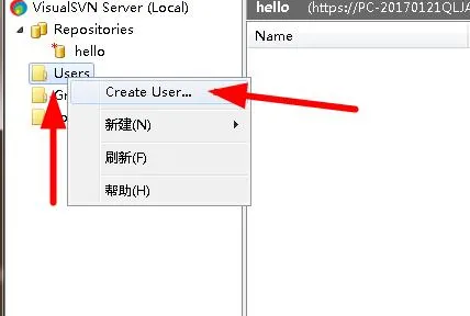 登陆成功。我们可以看到visualsvn的目录下已经出现了一个hello的文件夹,如图: