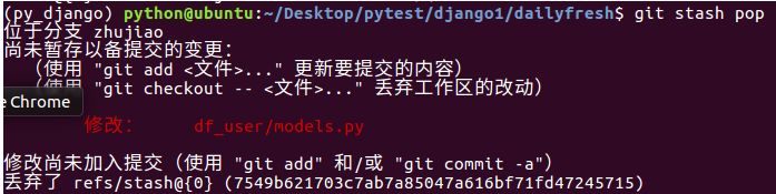 示例如下:停止当前工作,修复master分支下的一个bug,为修改dailyfresh/settings.py文件