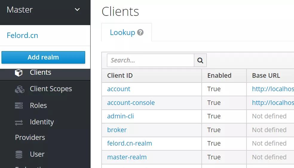 而且你会发现Master Realm创建的领域实际上是Master Realm的一个客户端,甚至它自己都是自己的客户端,而且名称遵循-realm。
