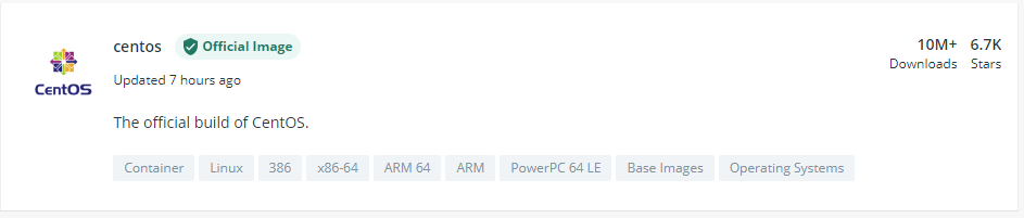 我们在dockerhub中搜索centos官方镜像,看一下的官方dockerfile文件。