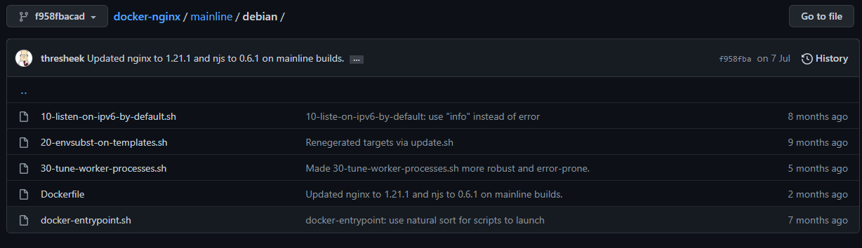 基本上每一个官方镜像都会为我们提供各自版本的dockerfile链接,如下: