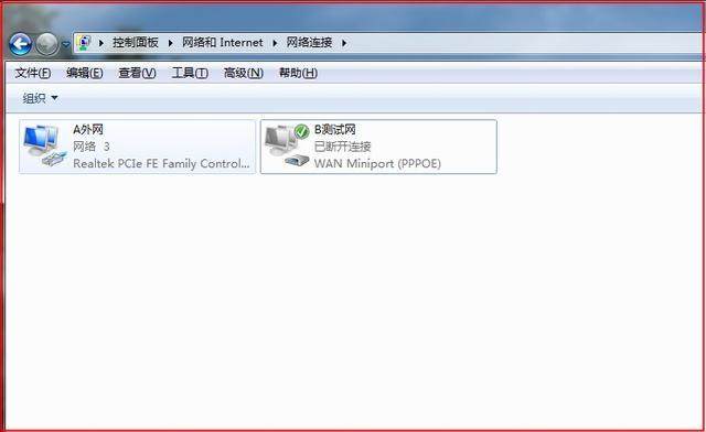 ②给网络适配器命名,在没做DHCP服务器之前,可以插入一条网线到网口A,这样你可以分清楚在网络适配器中对应网口A的是哪一个了,点击右键重新命名为A外网。