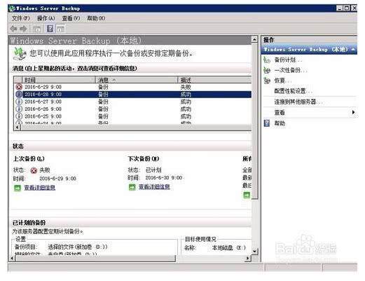 4、每天应该备份数据,可以使用Windows2008server r2自带的备份软件,进行备份。数据库文件也应该备份,可以选择每天空闲的时刻进行备份,如中午吃饭时间,下午下班时间。