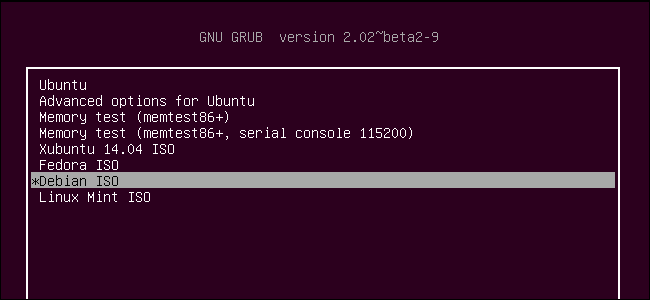 再次启动计算机时,你将看到ISO启动条目,你可以选择它来启动ISO文件。在启动时,你可能需要按Shift键来显示GRUB菜单。