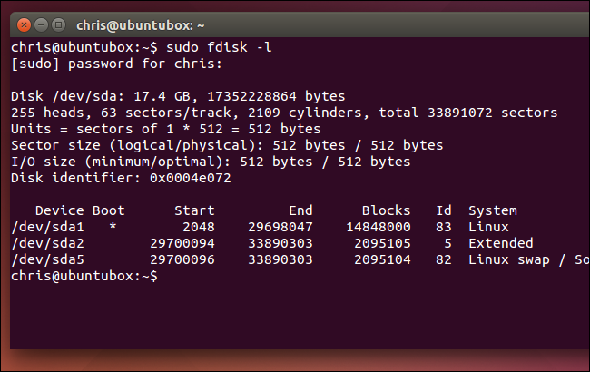 你可以使用fdisk -l命令来查看该信息。在Ubuntu上,打开终端并运行以下命令: