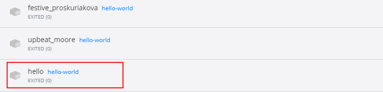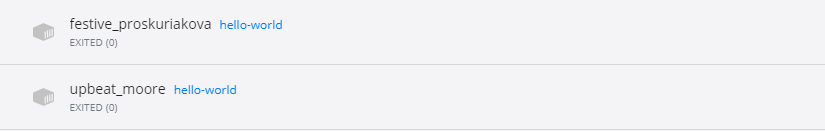 我们运行两次 hello-world 后打开 docker desktop,可以发现每次运行的容器名称貌似是随机分配的