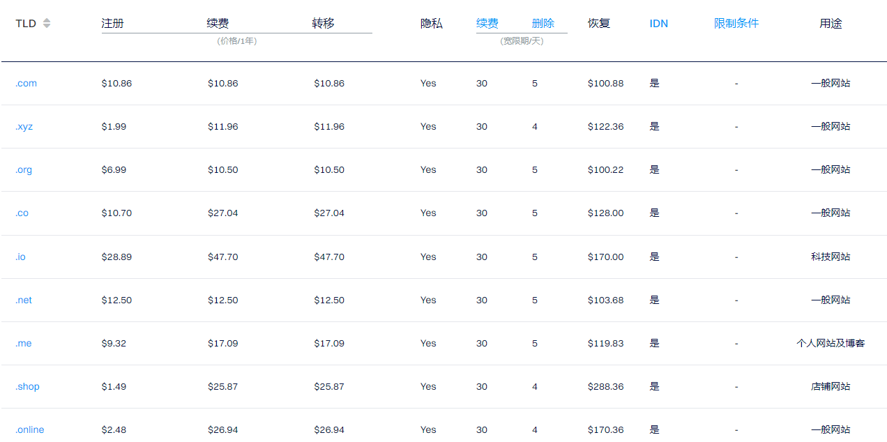Name.com支持多种后缀域名注册,热门的有.com域名、.net域名、.org域名等,注册价格便宜、续费便宜,管理方便、安全性高。