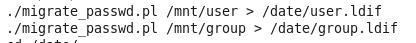 16,、分别使用./migrate_passwd.pl ./migrate_group.pl编译我们已经导出的ldap用户和组文件: /mnt/user /mnt/group分别是从/etc/passwd /etc/group 导出的ldap用户和组文件