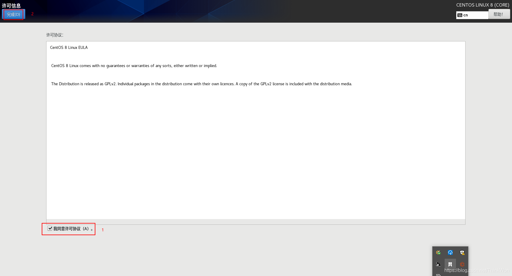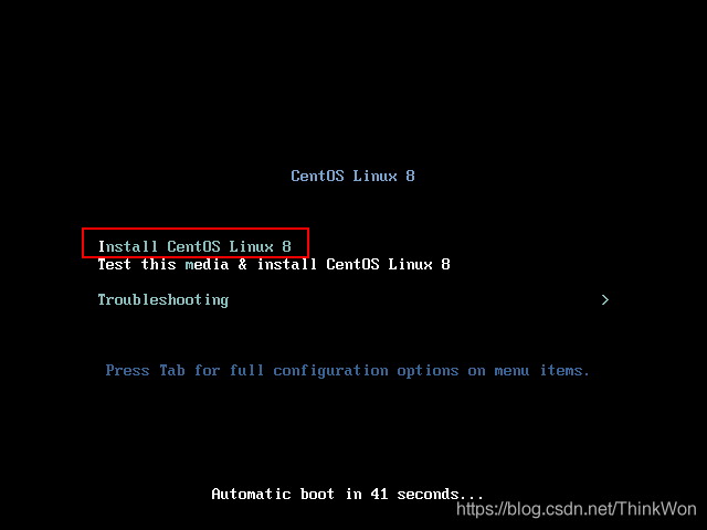 3.进入系统安装页面–>选择install cientos8 linux 8,稍等一会