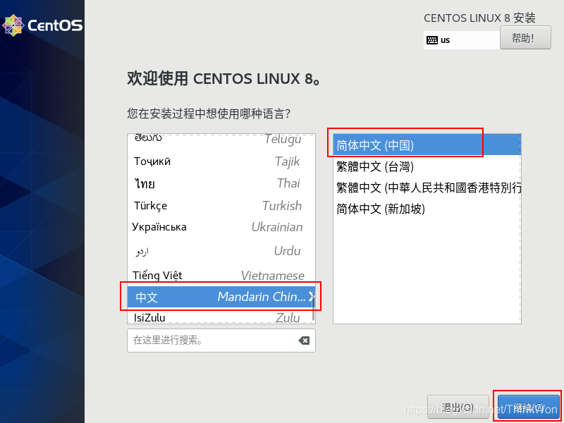 4.语言设置,根据自己的喜好设置,我这里选择中文,点击继续