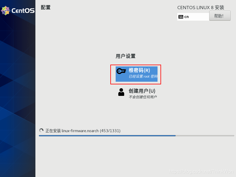 安装过程中,等待时间稍长,大概10分钟,可以配置用户和密码