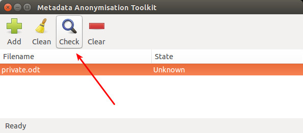 点击“添加”按钮来添加需要清理的文件到mat中。一旦载入文件,点击“确认”按钮对所有隐藏的元数据信息进行扫描。