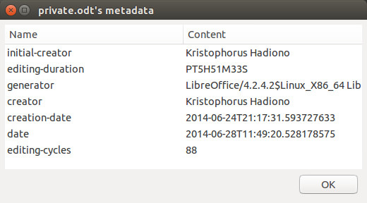尝试清理一个包含如下内置元数据的实例文档文件(如private.odt)。
