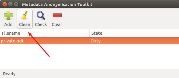点击“清理”按钮来清除文件中的元数据。mat会自动清空文件中的所有私有元数据字段。