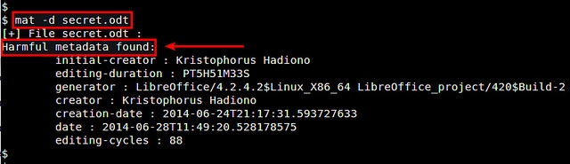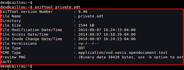 为了检查任何敏感的元数据,先前往文件所在的目录,然后运行: