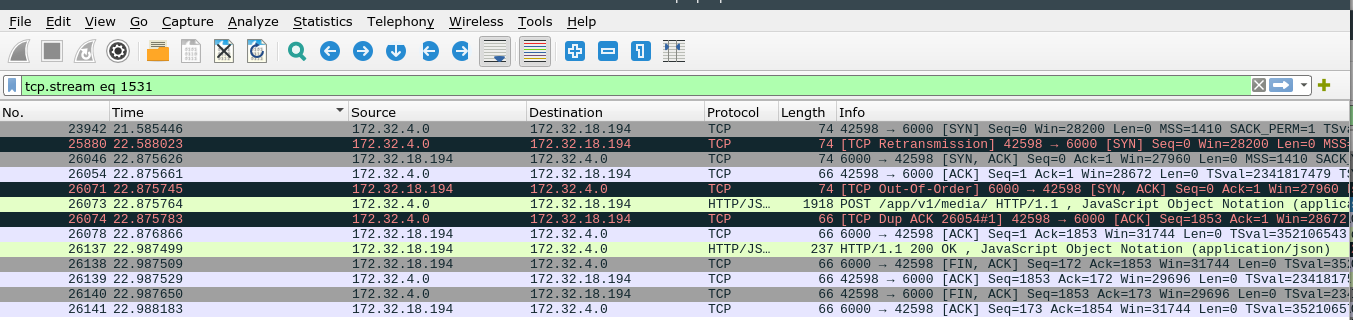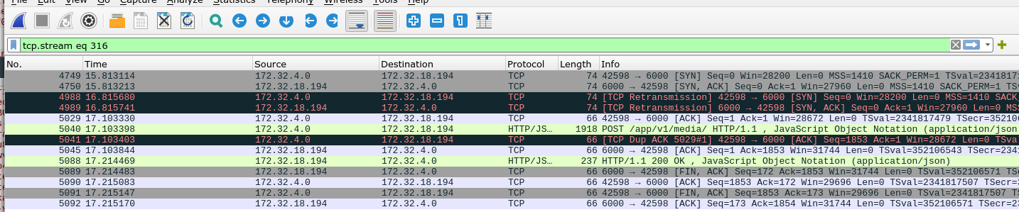 抓包调查主要针对 Ingress => uwsgi,由于数据包延迟的情况只是偶发性现象,所以需要抓取所有的数据包再进行过滤……这是一条请求时间较长的数据,本身这个接口返回应该很快。
