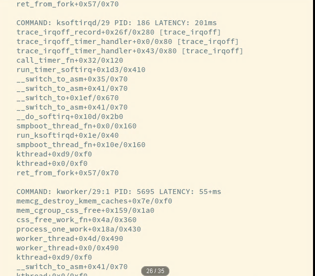 大佬们也提供了一个内核检查工具(可以追踪和定位中断或者软中断关闭的时间):https://github.com/bytedance/trace-irqoff