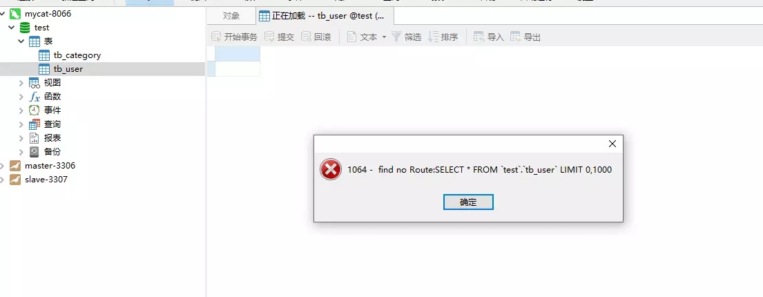 使用navicate连接mycat,端口8066(9066为管理端口)