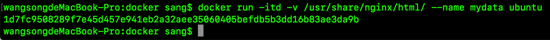 docker run -itd - v /usr/share/nginx/html/ --name mydata ubuntu |