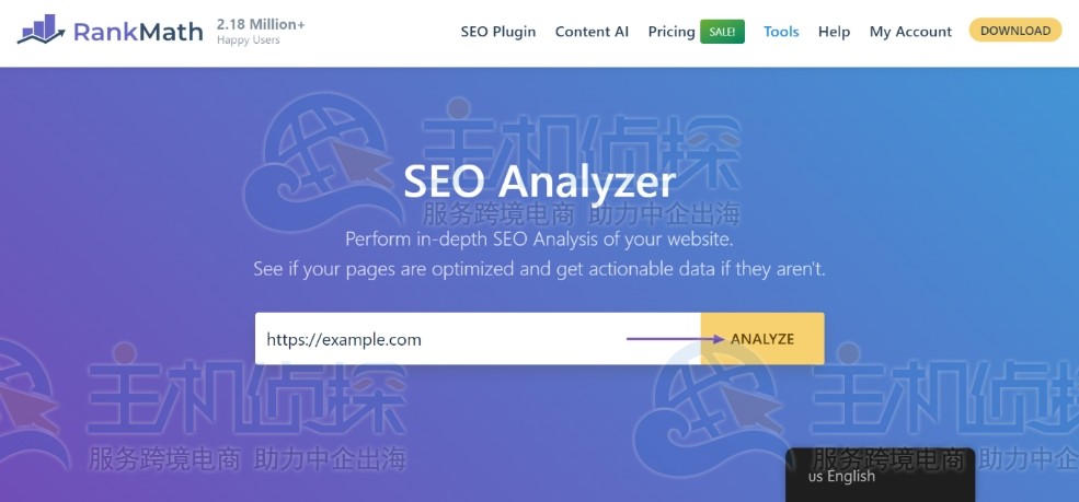 如果没有Rank Math PRO,请前往免费的SEO分析器并在可用字段中输入网站URL。然后,单击“分析”,如下所示。