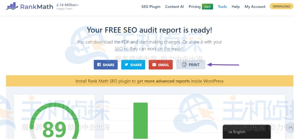 如果您使用免费的SEO分析器,请单击“打印”按钮,如下所示。