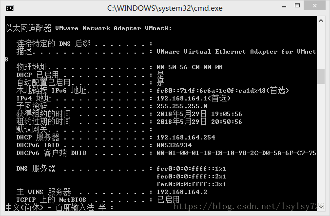 从图中可以看出其ip地址为192.168.164.1;
