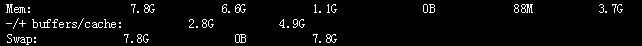 第三行则是针对交换控件,显示使用量(used)和有多少空闲的交换区(free)。