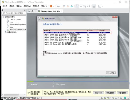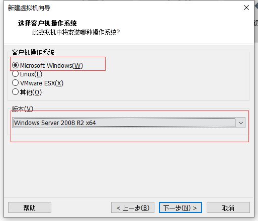 4.选择客户机操作系统以及版本,windows server 2008 r2 x64,如图所示。