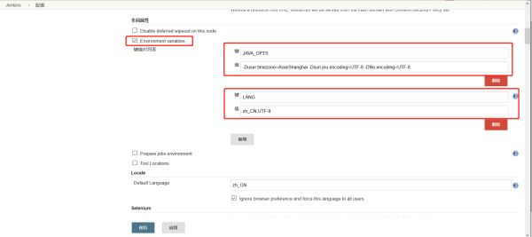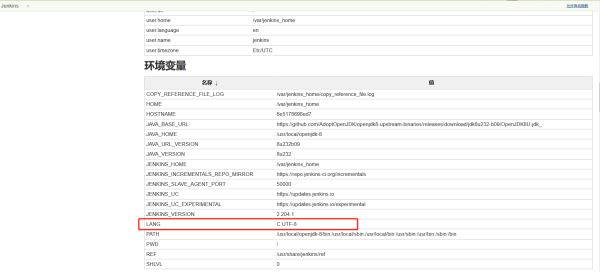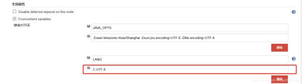 3.然后jenkins系统设置修改全局属性,将之前的lang = zh_cn .utf-8改成lang = c.utf-8 原因是:目前市场上做服务器基本被centos和debian占据吧,centos依靠redhat,debian自源,centos源于红帽,各种补丁以及服务更完善些,centos做服务器也较多吧,自动化部门我没猜错的话jenkins所在的宿主机用的是debian系统不是centos,因为debian中locale是支持zh_cn.utf-8,centos支持c.utf-8