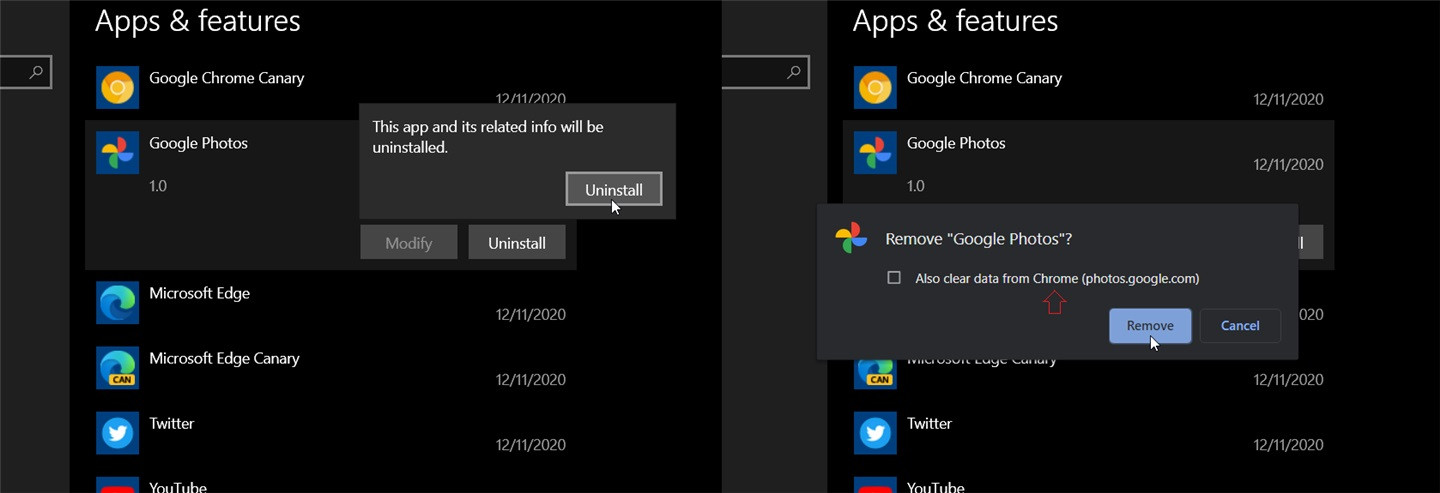 当用户从 Windows 设置或控制中卸载 PWA 时,也会从浏览器注册表中卸载 PWA。