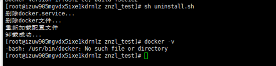 4.3 如果你想卸载docker,此时执行脚本 sh uninstall.sh 即可,执行过程如下: