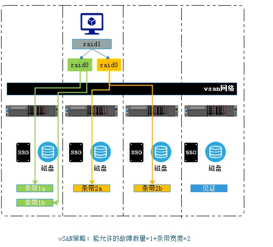 4)vsan利用分布式raid体系机构将数据分发到整个集群中