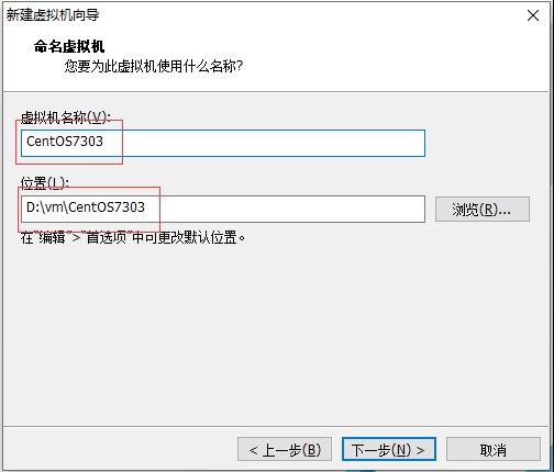填写虚拟机实例名称并选择虚拟机存放位置(按自己的习惯、实际情况填写与选择)