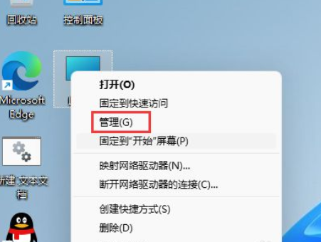 在Win11系统桌面上,鼠标右键此电脑选择管理进入。