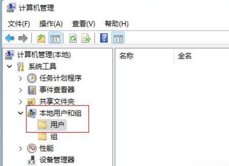 进入计算机管理界面,依次点击本地用户和组-用户展开。
