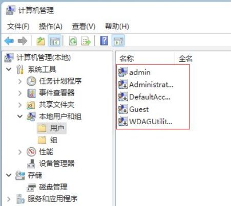2、之后可以重新进入计算机管理页面,点击“本地用户和组 – 选择用户文件夹 – 找到计算机\\默认帐户管理员” 。