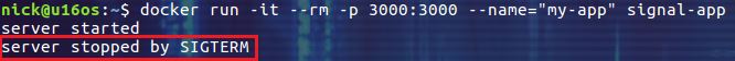 $ docker run -it -- rm -p 3000:3000 --name= "my-app2" signal-app2 |